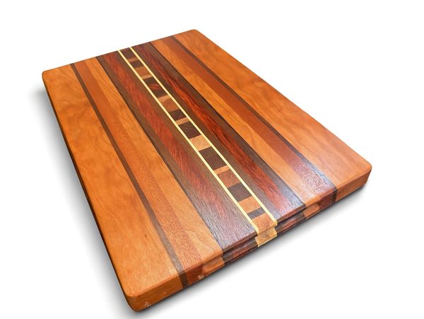 Available in two sizes, the Craftsman-Bubinga Board is sold exclusively at art fairs, where I present my work in person. I view each piece not simply as a cutting surface, but as a piece of usable art—designed to enrich the kitchen, complement gatherings, and reflect a legacy of fine woodworking.